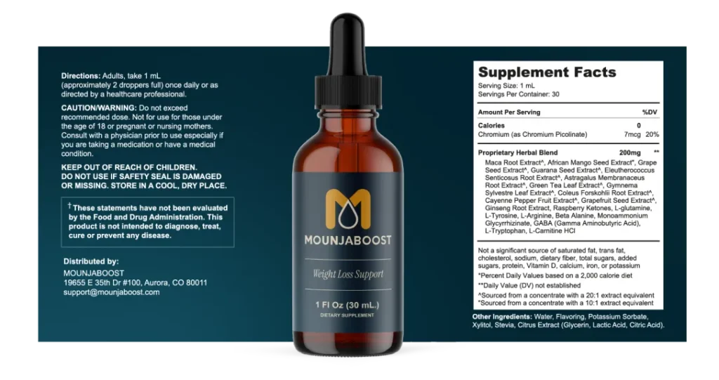 In summary, MounjaBoost is more than just a weight management supplement it’s a daily wellness companion designed to support metabolism, appetite control, and steady energy using all-natural, plant-based ingredients. Carefully crafted in FDA-registered, GMP-certified facilities, it ensures safety, purity, and reliability, giving you peace of mind with every drop.